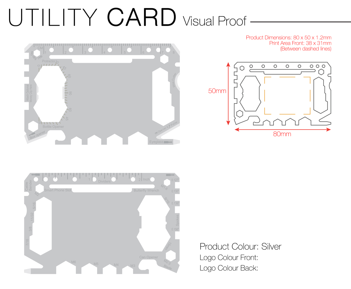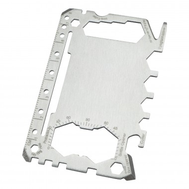 The Utility Card brings more than 25 useful tools into one compact credit size package. This stainless steel card also includes several different sized tools, including different sized screwdrivers and hex wrenches. Use the Utility Card to open boxes, bottles and letters, pull out staples or cut wires – you’ll be surprised with its endless useful features!