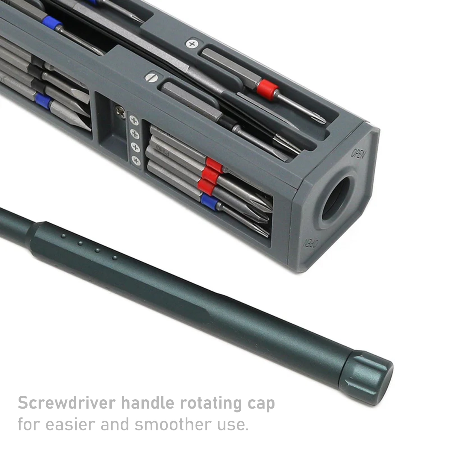 - Includes 28 Screwdriver bits, tweezers, spudger and driver