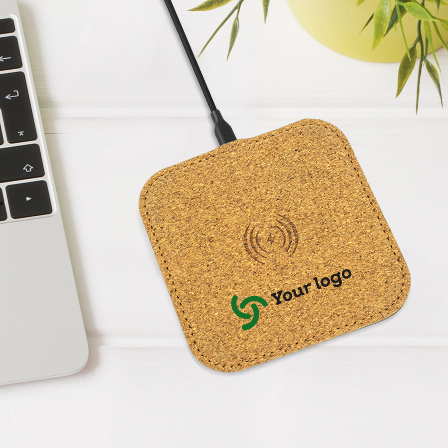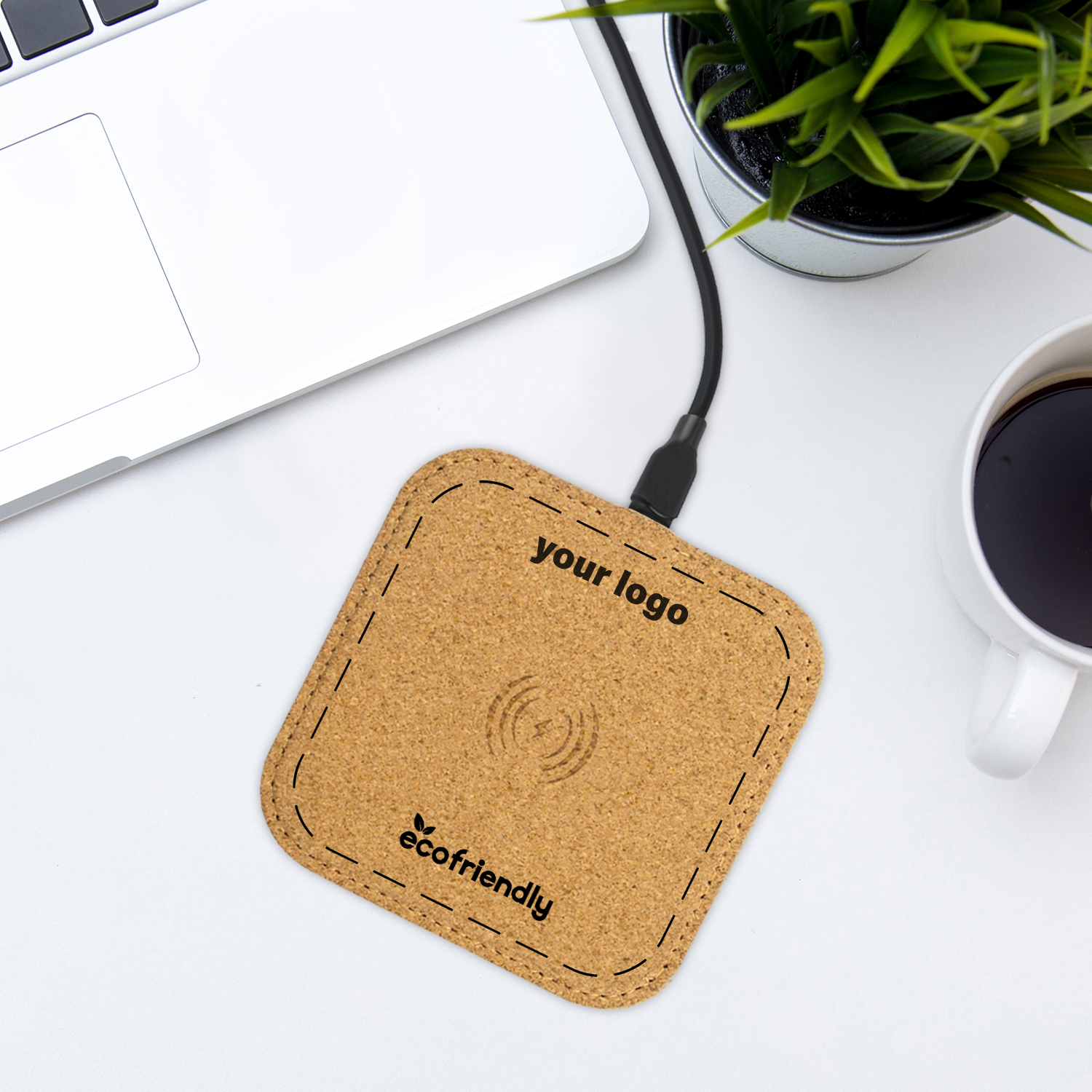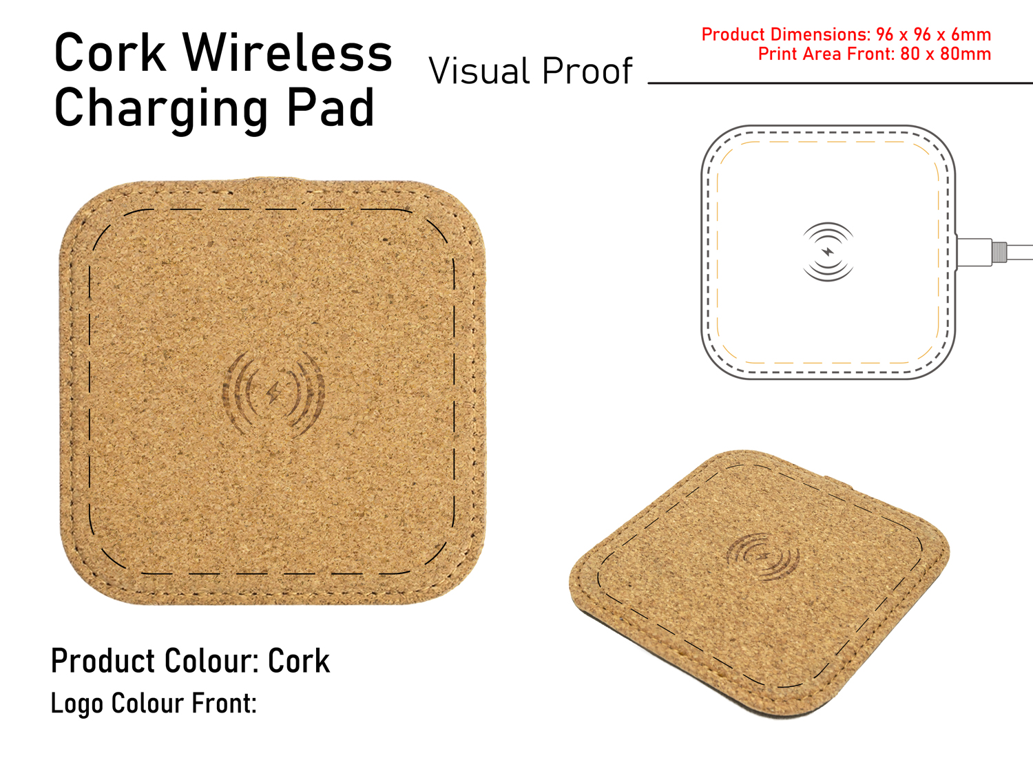 Wirelessly charge your Qi enabled devices on your bedside table or desk with the Cork Wireless Charging Pad, bringing a eco-friendly look and feel to modern technology. Simply plug the included cable into the Cork Wireless Pad and connect to power- then place your wireless charging enabled device on top to receive wireless 5W power. The sustainable cork exterior can be printed across the entire pad within the stitching, achieving eye-catching branding for this unique eco-friendly wireless charger.