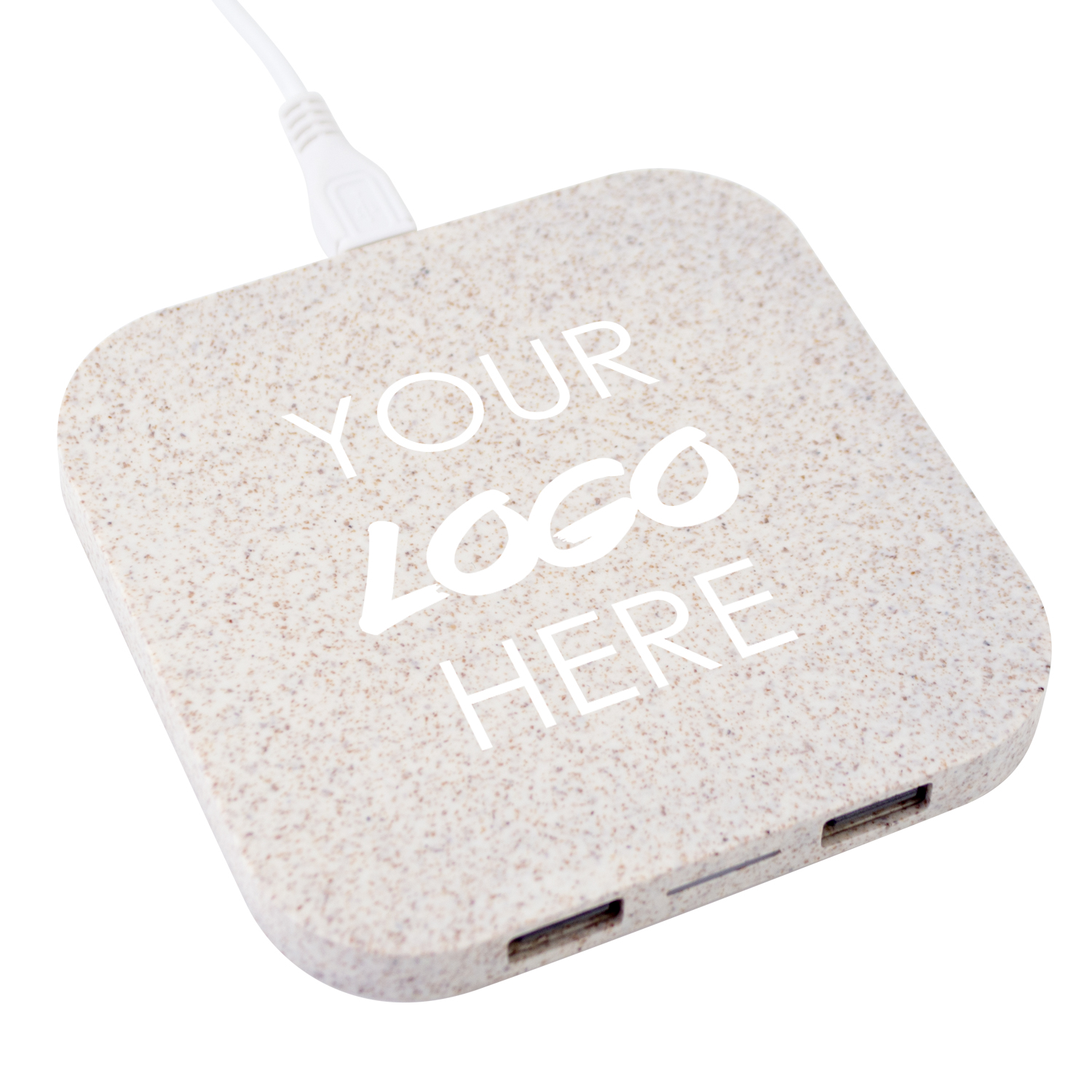 The Wireless Charging USB Hub has gone ECO-friendly! The ECO Charging Hub is made from wheat straw, which is the stalk left over after wheat grains are harvested. Traditionally, it has been treated as a waste. In some countries, farmers burn it, contributing to air pollution and creating a public health hazard. When mixed with other materials, it becomes an amazing plastic substitute and helps against the impacts of plastic waste. Wirelessly charge your devices on the most compact eco-friendly wireless charger yet!
