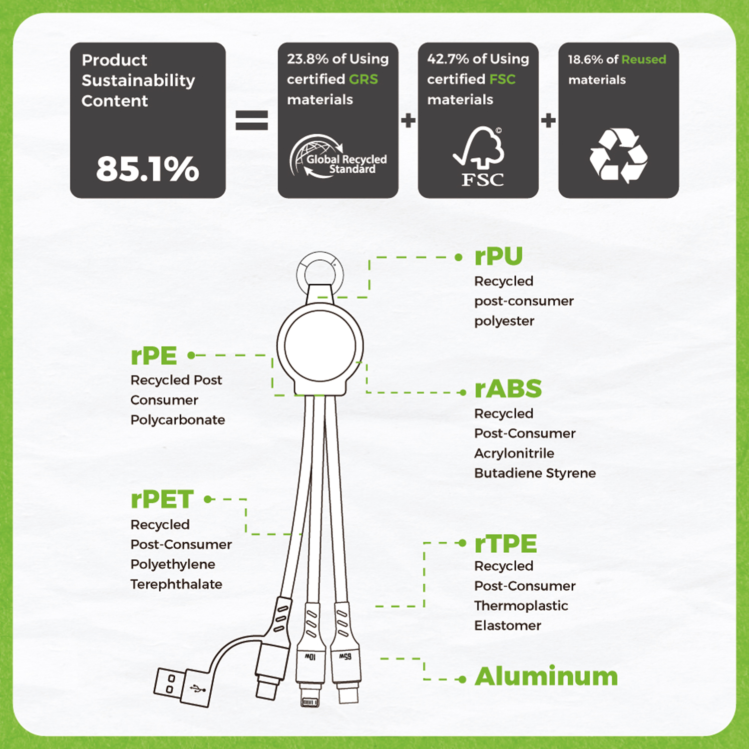 • Environmentally Friendly Made from 85.1% Sustainable Materials