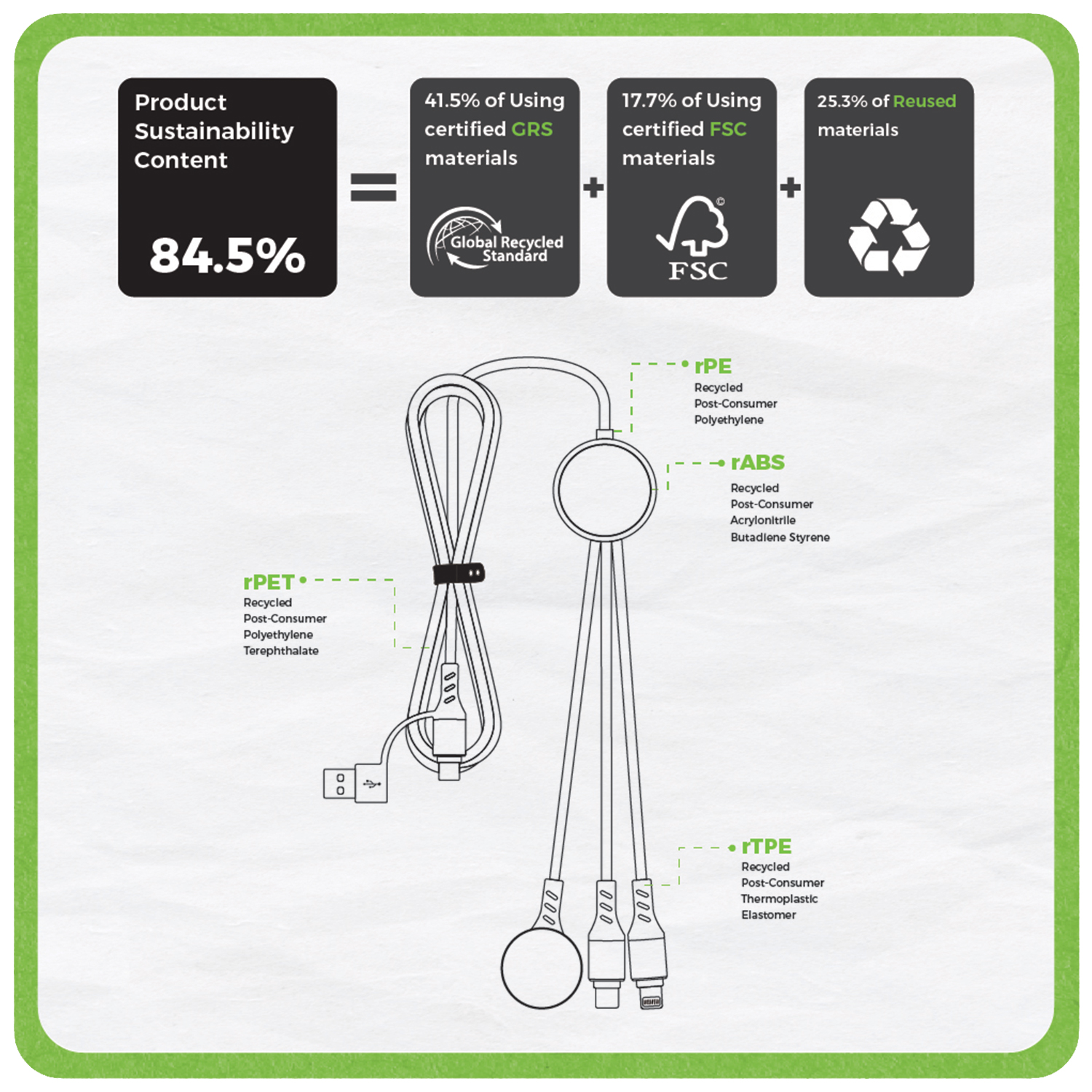 • Environmentally Friendly Made from 84.5% Sustainable Materials