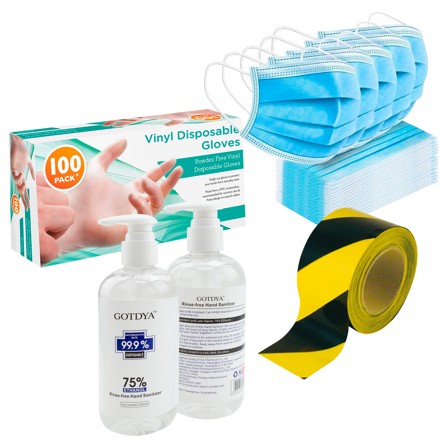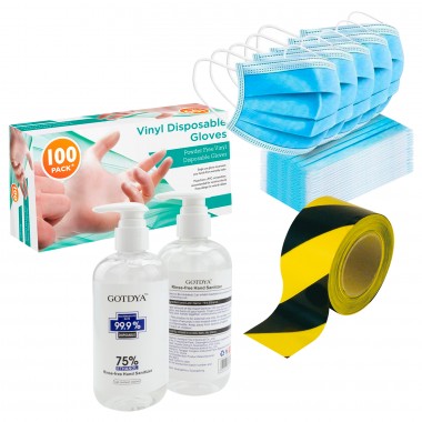 Get your family, friends and colleagues ready with the Starter Office Pack. This pack features the main items you need to keep yourself and others around you safe; protective face masks and gloves for personal protection, but also hazard tape and hand sanitizer to keep everyone around you protected.