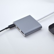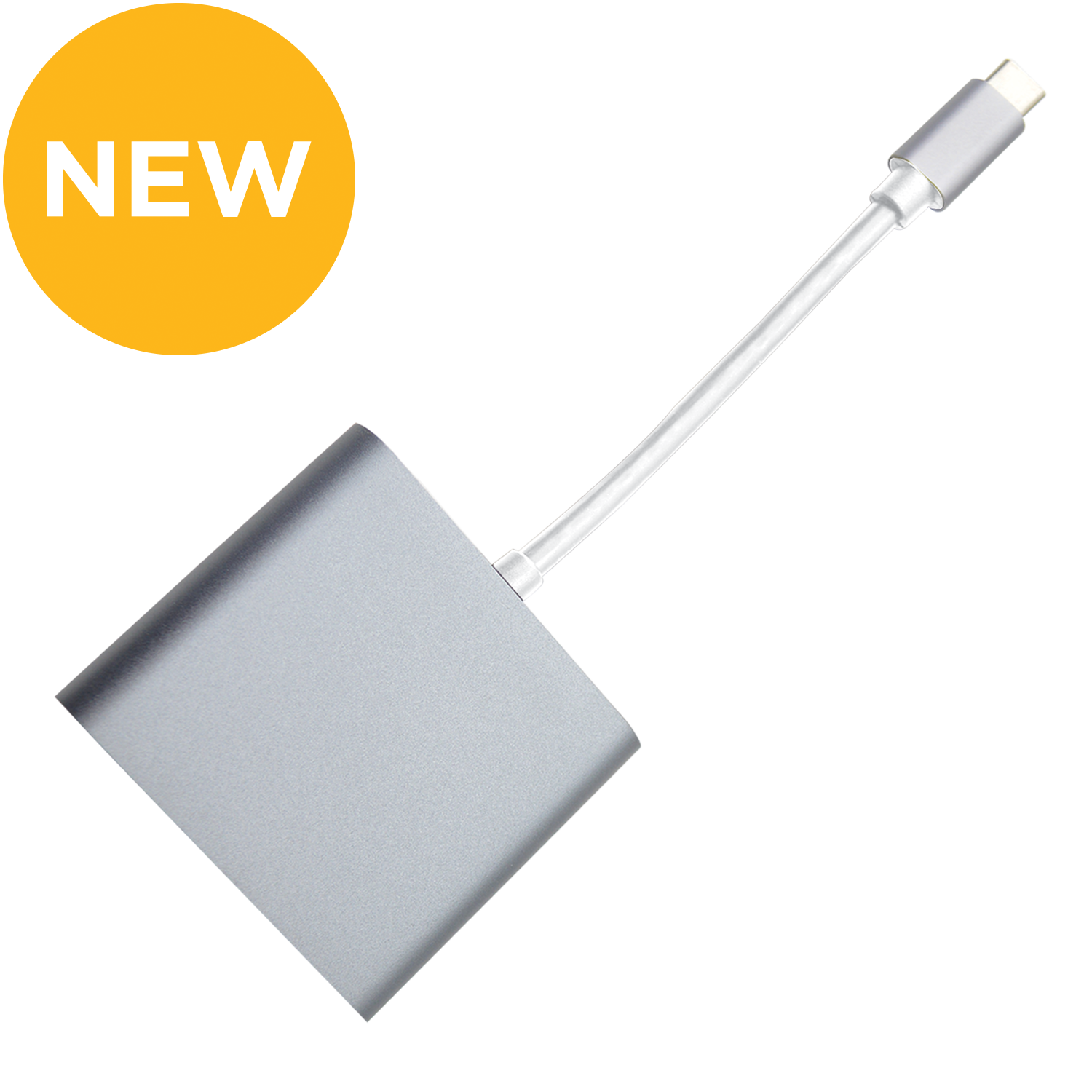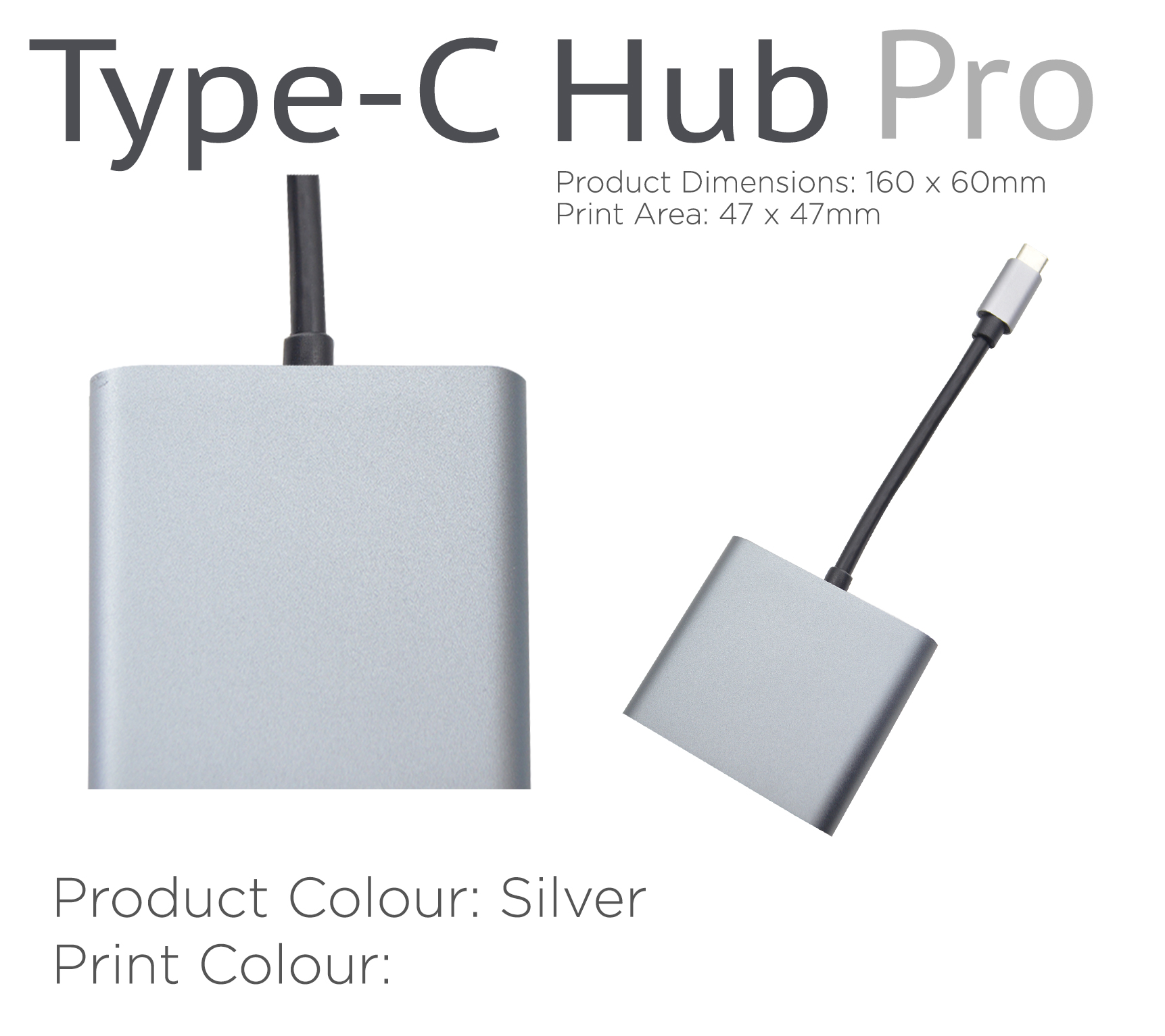 Turn your laptop’s singular USB Type-C port into one USB Type-A port, one Type-C port and one HDMI port. The Type-C Hub Pro increases your laptops connectivity by adding all of this through one singular type-c connection. The Type-C Hub Pro doesn’t need an external power adapter, which makes travel more convenient and workstations less cluttered! Coming in a sleek dark metal finish and boasting a large branding area- the Type-C Hub Pro is the perfect accessory for your laptop.