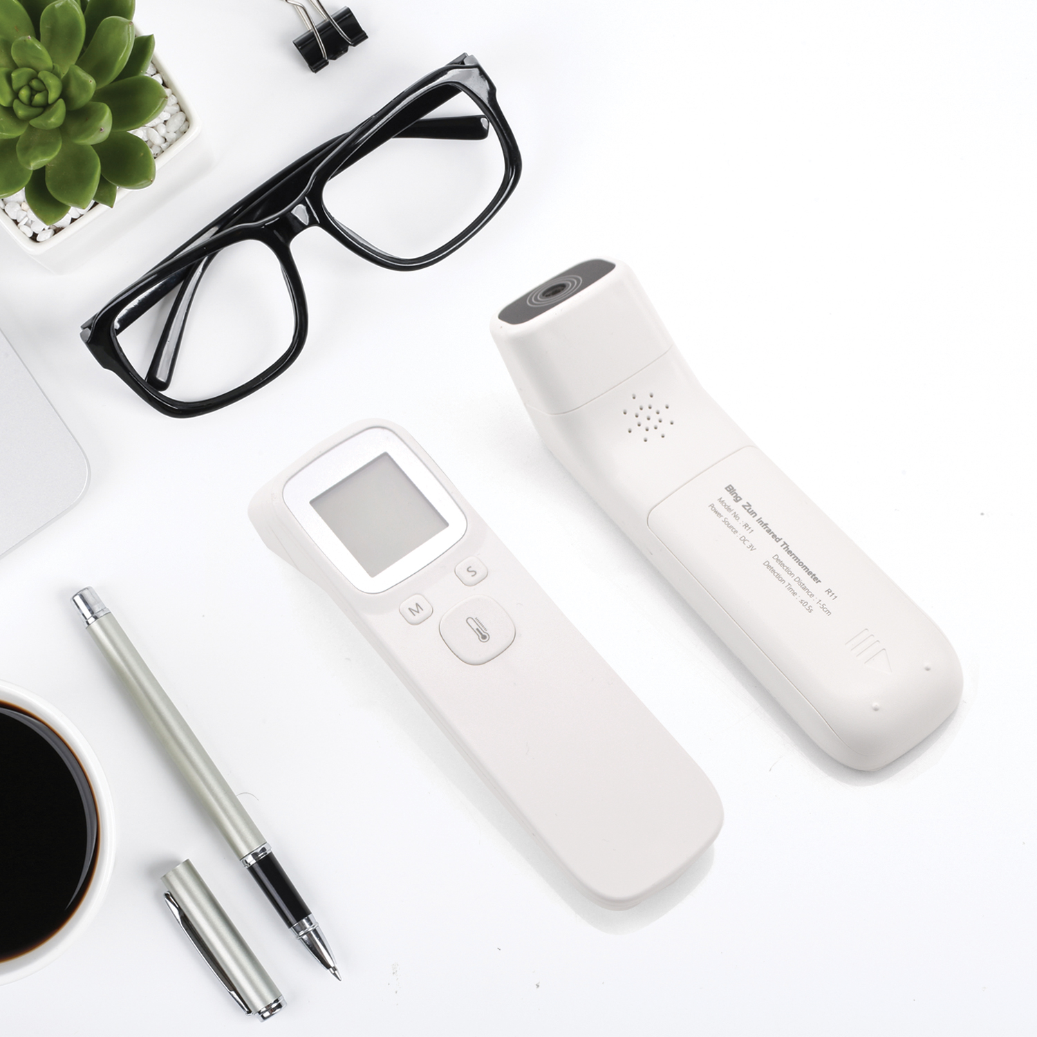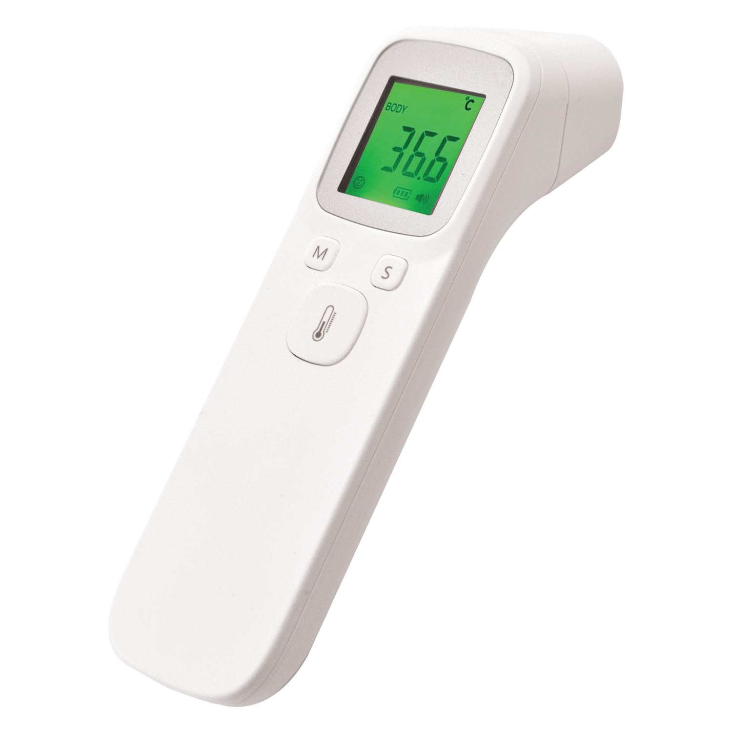 LED back light will light up green for a normal temperature reading, orange for a warm temperature reading and red for a high temperature, accompanied by a buzzer alarm if the temperature reading is dangerously high. Simply aim the thermometer at the forehead and press the test button for 1 second readings.