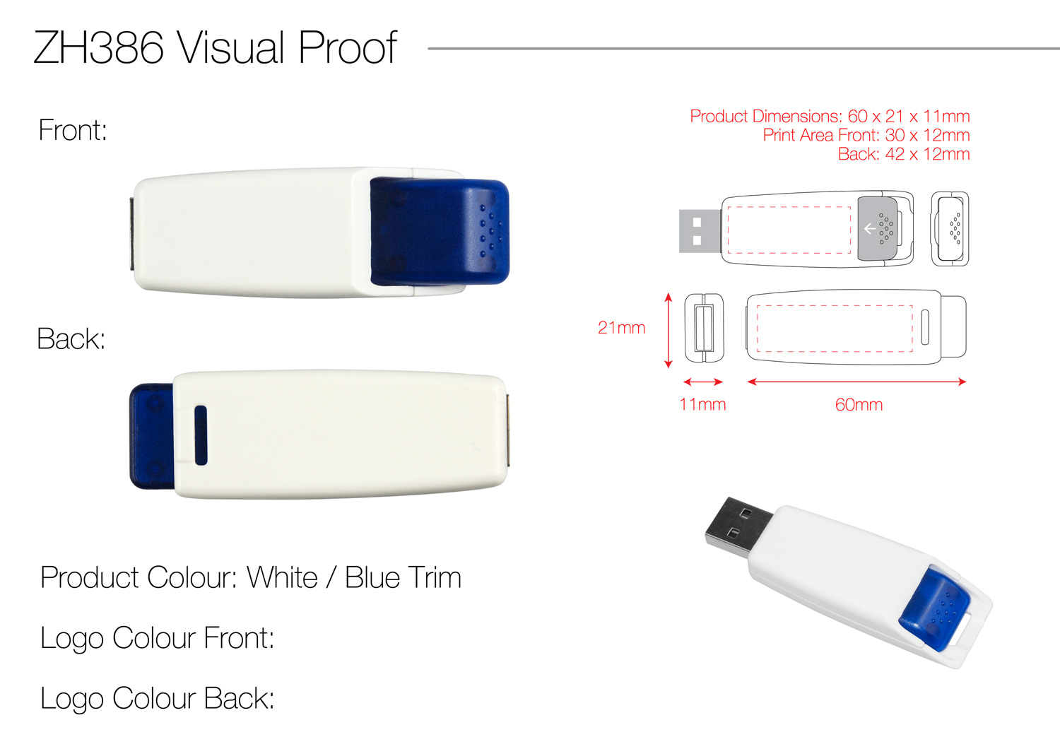 Logo Printing Area: Front: 30 x 12 mm & Back: 42 x 12 mm